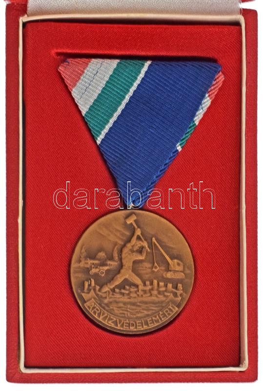 1960. "Árvízvédelemért" bronz kitüntető jelvény mellszalagon, eredeti tokban (35mm) T:AU
