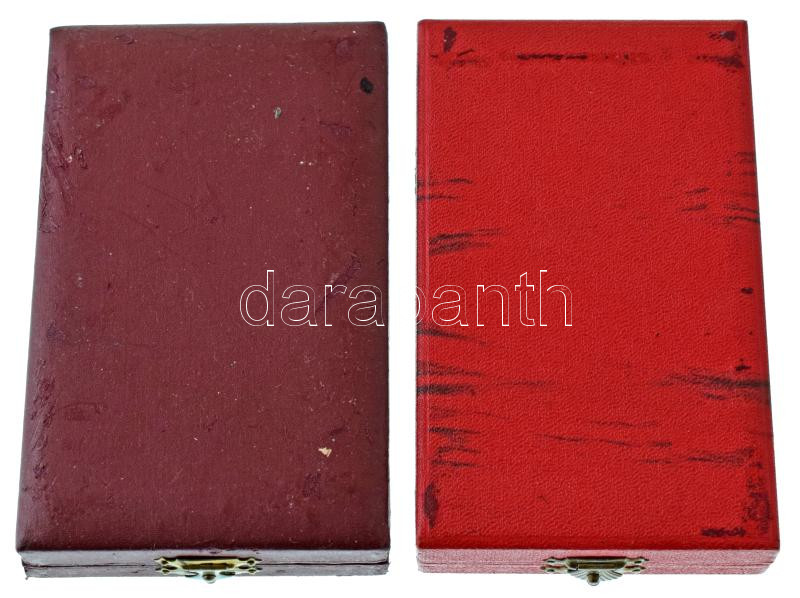1964. "A Munka Érdemrend ezüst fokozata" ezüstözött, zománcozott bronz kitüntetés kifakult mellszalagon, miniatűrrel, eredeti sérült tokban + 1985. "Munka Érdemrend" arany fokozata, zománcozott, aranyozott bronz kitüntetés mellszalagon, miniatűrrel szalagsávon, eredeti (ragadós) tokban T:AU