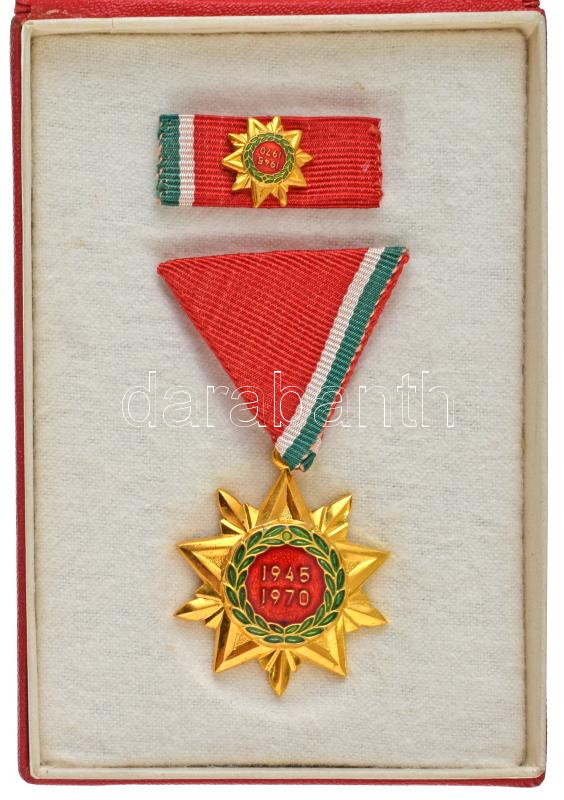 1970. "Felszabadulási Jubileumi Emlékérem" aranyozott, műgyantás bronz kitüntetés mellszalagon, miniatűrrel szalagsávon, eredeti tokban T:AU