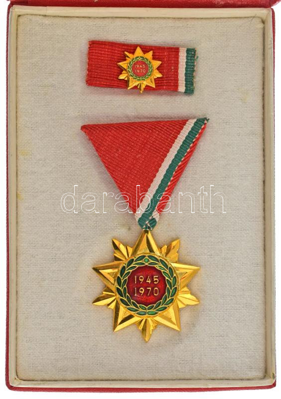 1970. "Felszabadulási Jubileumi Emlékérem" aranyozott, műgyantás bronz kitüntetés mellszalagon, miniatűrrel szalagsávon, eredeti tokban T:AU