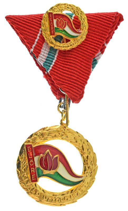 1970 k. "Kiváló Úttörővezető" aranyozott, műgyantás kitüntetés mellszalagon miniatűrrel T:AU