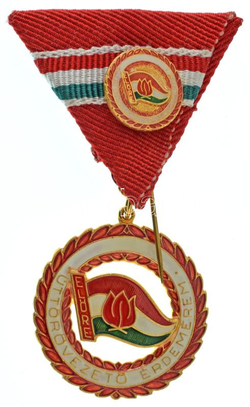 1980 k. "Úttörővezető Érdemérem" műgyantás fém kitüntetés mellszalagon miniatűrrel T:AU