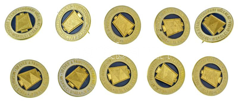 1986. "30 éves a Pamutfonóipari Vállalat miskolci gyára" műgyantás fém jelvény eredeti selyempapírba csomagolva (10db) T:UNC
