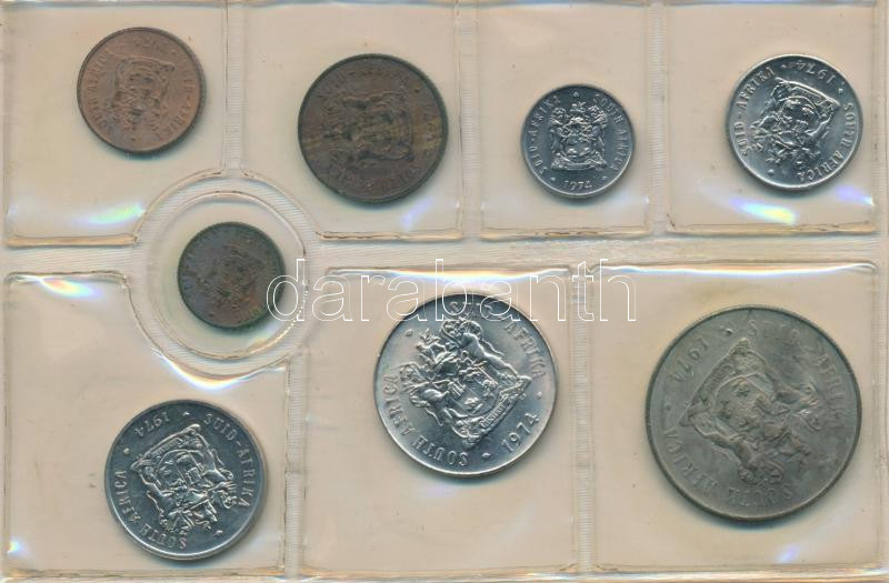 Dél-Afrika 1974. 1/2c-1R (8xklf) forgalmi sor zárt fóliacsomagolásban,... https://www.darabanth.com/en/514-Auction-philately-postcards-numismatics-artwork-books-colletibles-jewelry/515.0/Numismatics/Foreign-Coin-sets~1318/Del-Afrika-1974-12c-1R-8xklf-forgalmi-sor-zart-foliacsomagolasban-kozte-1974-1R-Ag-A-Pre~II3393254