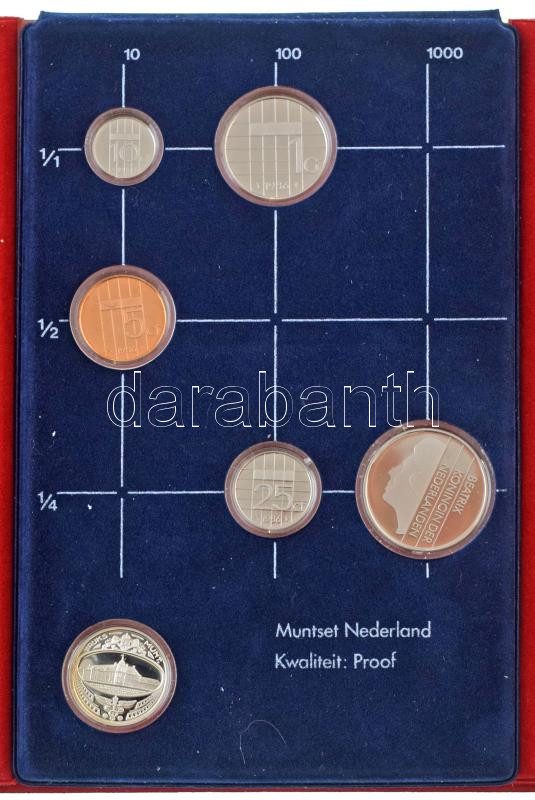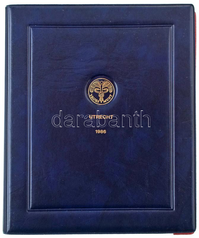 Hollandia 1986. 5c-2 1/2G (5xklf) forgalmi sor + Ag zseton eredeti műbőr tokos szettben, tanúsítvánnyal (5,5g/0.925/23mm) T:PP