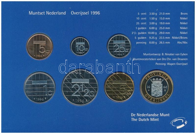 https://www.darabanth.com/en/514-Auction-philately-postcards-numismatics-artwork-books-colletibles-jewelry/515.0/Numismatics/Foreign-Coin-sets~1318/Hollandia-1996-5c-5G-6xklf-plus-Provincie-Overijssel-emlekerem-forgalmi-sor-karton-disztokban-T~II3402642
