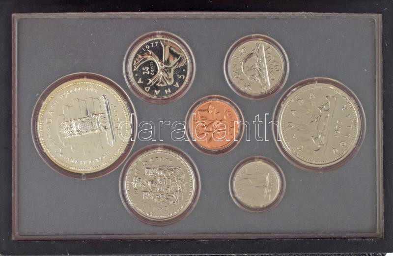 Description: Kanada 1977. 1c-1$ (6xklf) forgalmi sor eredeti dísztokban, benne 1$ Ag "Ezüstjubileum" T:BU patina