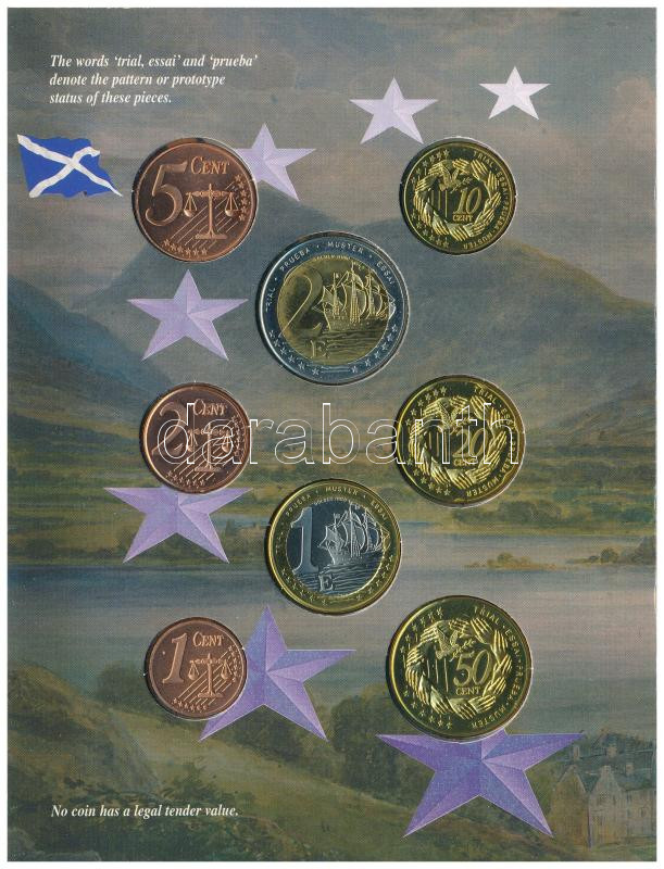 Great Britain 2003. 1 Cent - 2 Euro (8xdiff) trial strike coin set in cardboard case C:UNC