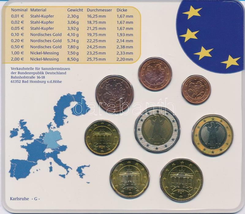 Németország 2004G 1c - 2E (8xklf) forgalmi sor, lezárt műanyag tokban (Karlsruhe) T:UNC, patina