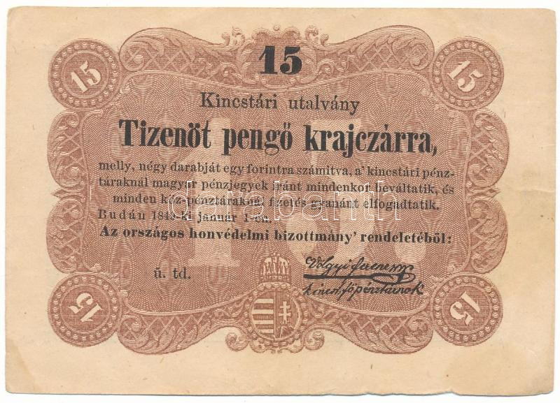 1849. 15kr "Kossuth bankó" T:F, kis beszakadás