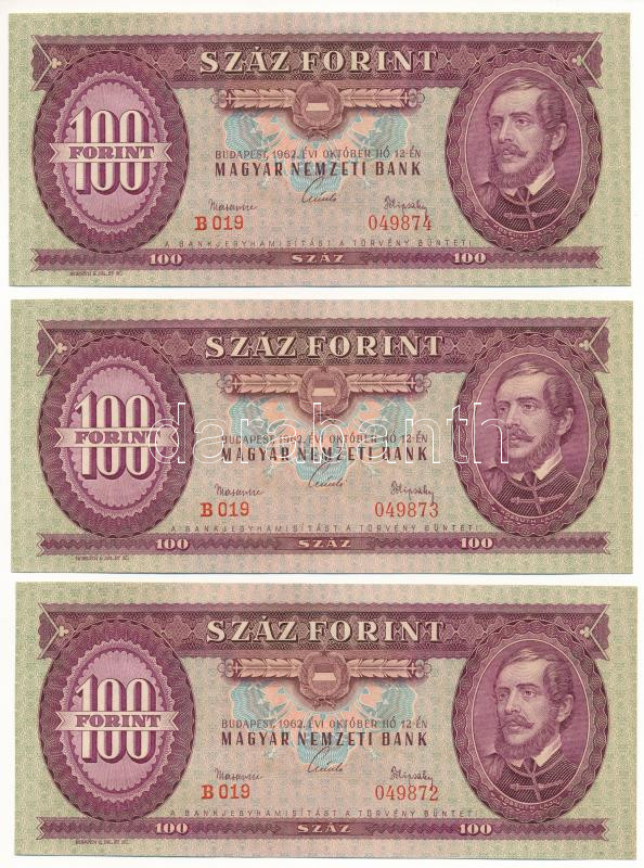 1962. 100Ft (3x) "B019 049872 - B019 049874" T:AU hullámos papír