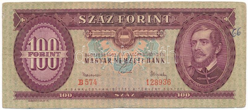 1962. 100Ft "B 574 128936" T:F elején kézírás