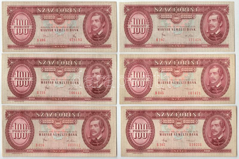 https://www.darabanth.com/en/514-Auction-philately-postcards-numismatics-artwork-books-colletibles-jewelry/515.0/Numismatics/Hungarian-Banknotes~1309/1975-1984-100Ft-6db-3xklf-TXF-F-szep-papir~II3465905