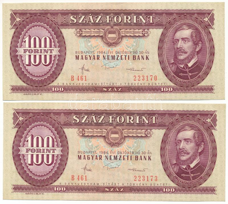 1984. 100Ft (2x) közeli sorszámok "B 461 223170 és B 461 223173&q...