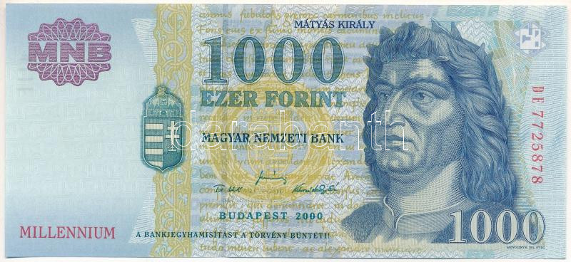 2000. 1000Ft "DE 7725878" "Millennium" T:F szép papír