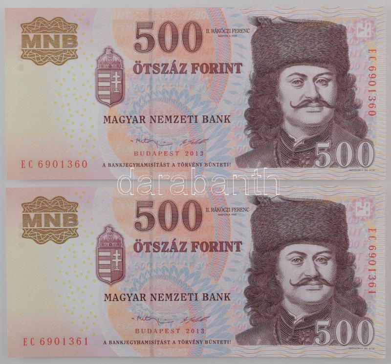 2013. 500Ft (2x) sorszámkövetők "EC 6901360 - EC 6901361" T:AU