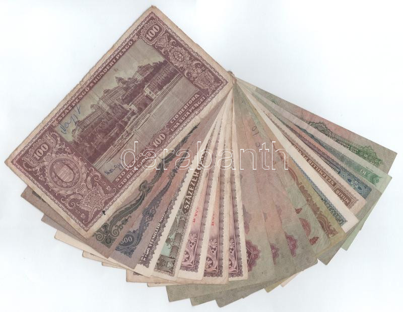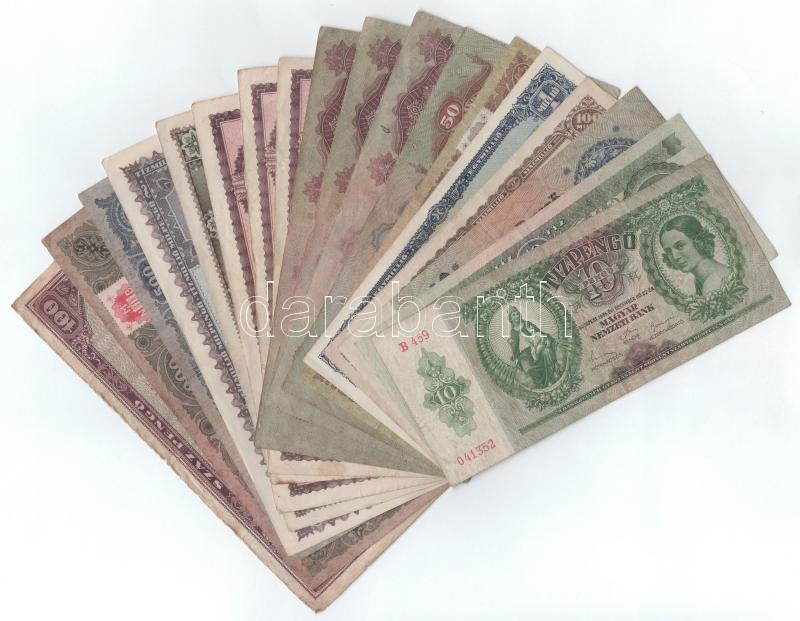 https://www.darabanth.com/en/514-Auction-philately-postcards-numismatics-artwork-books-colletibles-jewelry/515.0/Numismatics/Hungarian-Banknotes~1309/Vegyes-18db-os-foleg-Pengo-bankjegyekbol-allo-tetel-TF-VG-kozte-szep-papir~II3404199