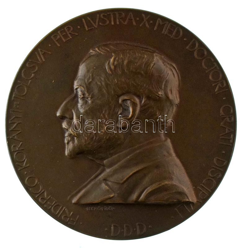 Beck Ötvös Fülöp (1873-1945) 1901. "Korányi Frigyes doktorrá avatásának 50. évfordulója" kétoldalas bronz emlékérem. "FRIDERICO KORÁNYI DE TOLCSVA PER LVSTRA X MED DOCTORI CRATI DISCIPVLI D D D / AEGROTIS SALVS MDCCCLI MDCCCCI" (70mm) T:AU,XF