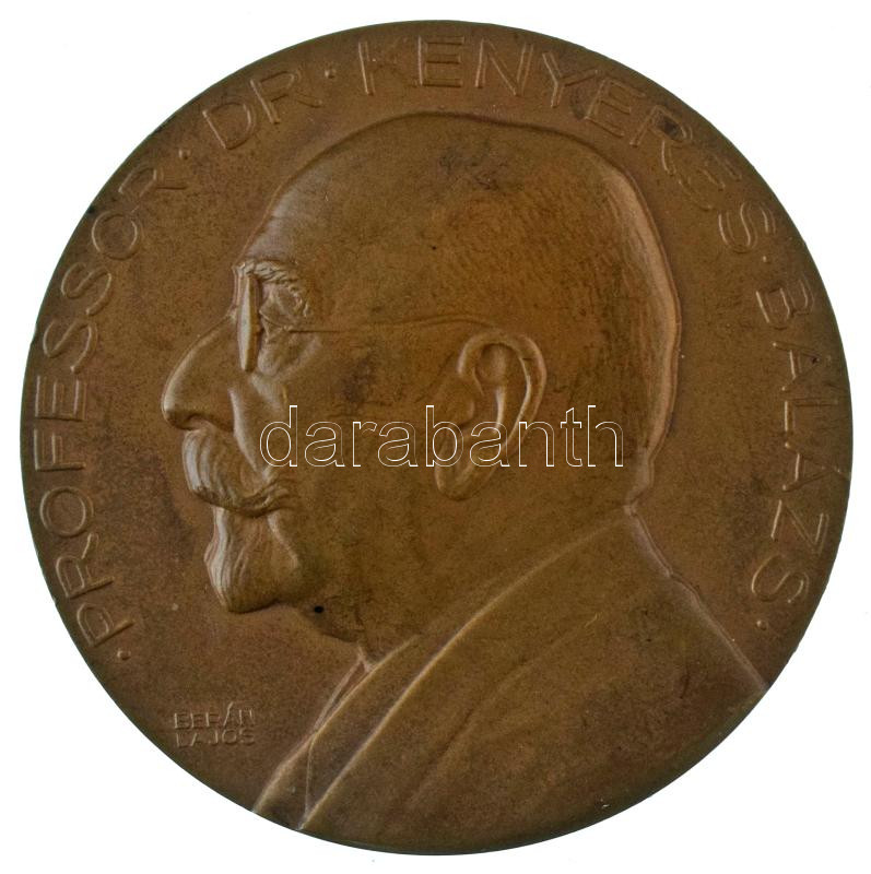 Berán Lajos (1882-1943) 1935. "Professor Dr. Kenyeres Balázs / 40 éves tanári működése emlékére" kétoldalas bronz emlékérem (60mm) T:AU