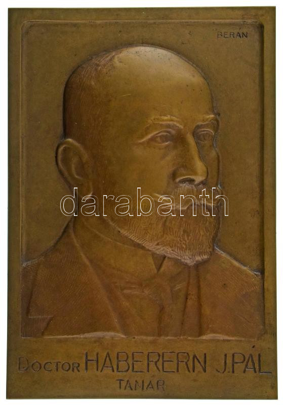 Berán Lajos (1883-1943) 1912 k. "Doctor Haberern Jonathan Pál tanár" egyoldalas öntött bronz plakett (181x125mm) T:AU