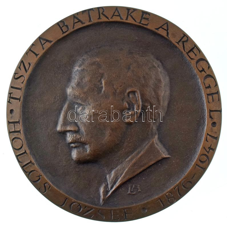Lapis András (1942- ) 1977. "Tiszta bátraké a reggel - Hollós József 1876-1947 / 1877-1977" kétoldalas, öntött bronz plakett (104mm) T:AU