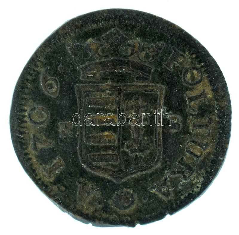 Hungary 1706KB Poltura Cu "Francis II Rákóczi" Kremnitz / Kremnica (2,68g) C:XF edge error, patina