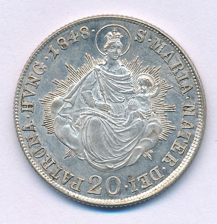 https://www.darabanth.com/en/514-Auction-philately-postcards-numismatics-artwork-books-colletibles-jewelry/515.0/Numismatics/Hungarian-coins-and-coins-with-Hungarian-mint-marks~1310/1848B-20kr-Ag-3Cem3EV-Ferdinand3Cem3E-TAU-XF3Cbr-3E-Huszar-2081-Unger-III-1419~II3476451