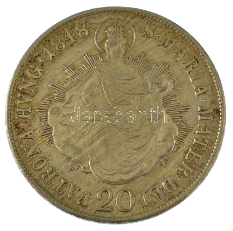 1848B 20kr Ag "V. Ferdinánd" T:AU juszt. / Hungary 1848B 20 Kreuzer Ag "Ferdinand V" C:AU adjusted Huszár: 2081., Unger III.: 1419.