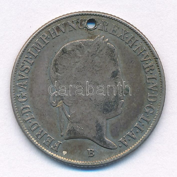 1848B 20kr Ag "V. Ferdinánd" T:XF lyuk / Hungary 1848B 20 Kreuzer Ag "Ferdinand V" C:XF hole Huszár: 2081., Unger III.: 1419.