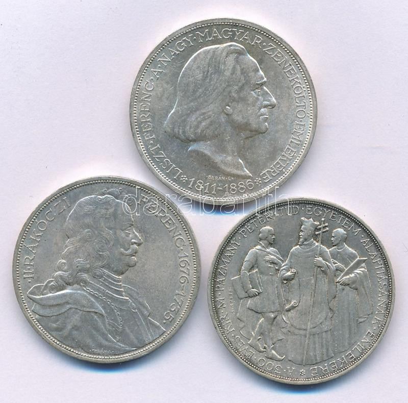 https://www.darabanth.com/en/514-Auction-philately-postcards-numismatics-artwork-books-colletibles-jewelry/515.0/Numismatics/Hungarian-coins-and-coins-with-Hungarian-mint-marks~1310/1935-2P-Ag-Pazmany-plus-2P-Ag-Rakoczi-plus-1936-2P-Ag-Liszt-Ferenc-Pazmany-sor-TAU-XF-k~II3476421