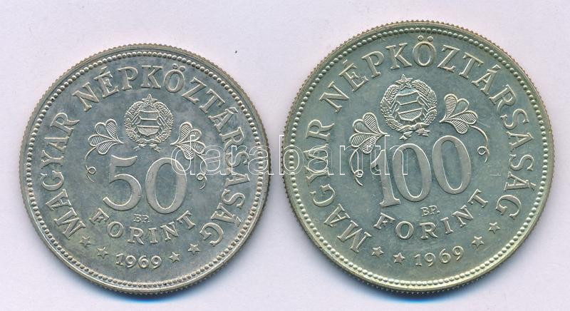 1969. 50Ft Ag + 100Ft Ag "Tanácsköztársaság" érmepár T:AU