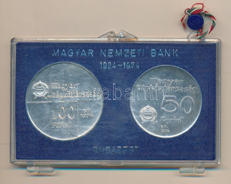 1974. 50Ft Ag "MNB" + 100Ft Ag "MNB" érmepár eredeti, plombált, "MNB" plasztiktokban T:BU, enyhén karcos tok
