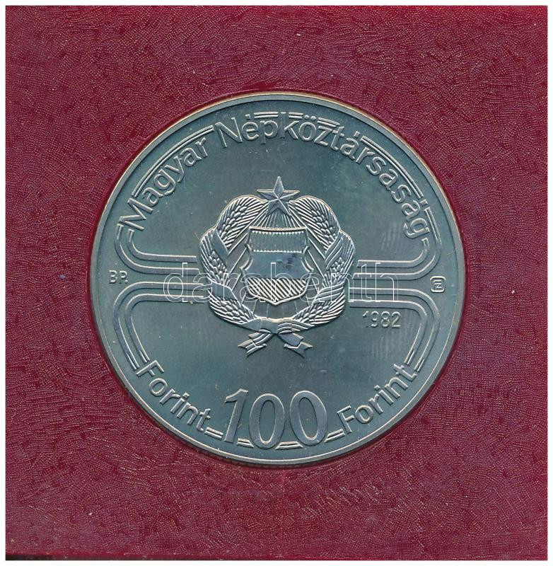 1982. 100Ft Cu-Ni "Labdarúgó világbajnokság 1982" műbőr tokban, tanúsítvánnyal T:UNC kis patina Adamo EM68