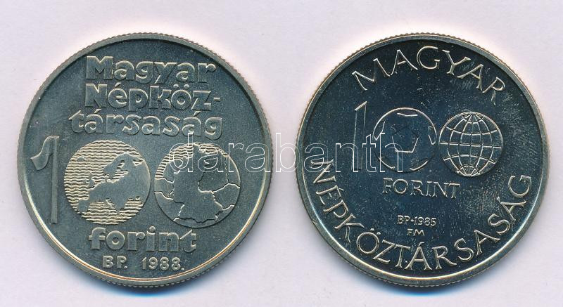 1985. 100Ft alpakka "Labdarúgó Világbajnokság 1986. - Mexikó térkép" kapszulában + 1988. 100Ft Cu-Ni-Zn "Labdarúgó Európa-bajnokság" kapszulában T:BU