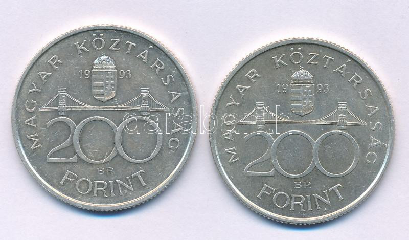 1993. 200Ft Ag "MNB" (2x) T:AU,XF kis patina