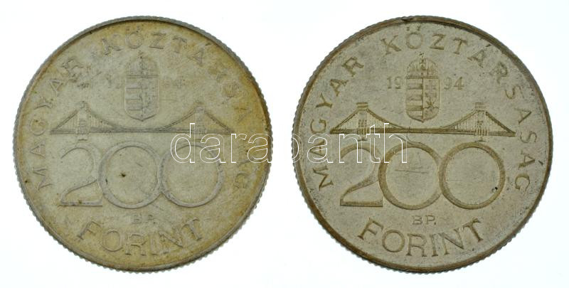 1994. 200Ft Ag "Deák" (2x) T:XF,VF patina