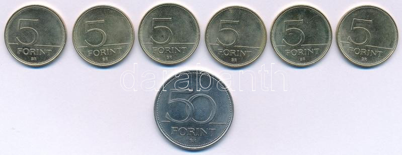 2005. 50Ft Cu-Ni "Gyermekmentő Szolgálat" + 2021. 5Ft Cu-Ni-Zn "75 éves a Forint" (6xklf) teljes sor! T:XF