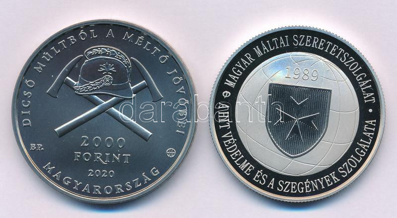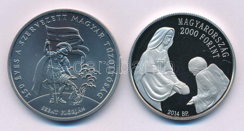 2014. 2000Ft Cu-Ni "A Magyar Máltai Szeretetszolgálat 25. évfordulója" kapszulában + 2020. 2000Ft Cu-Ni "150 éves a szervezett Magyar Tűzoltóság" kapszulában T:PP,BU