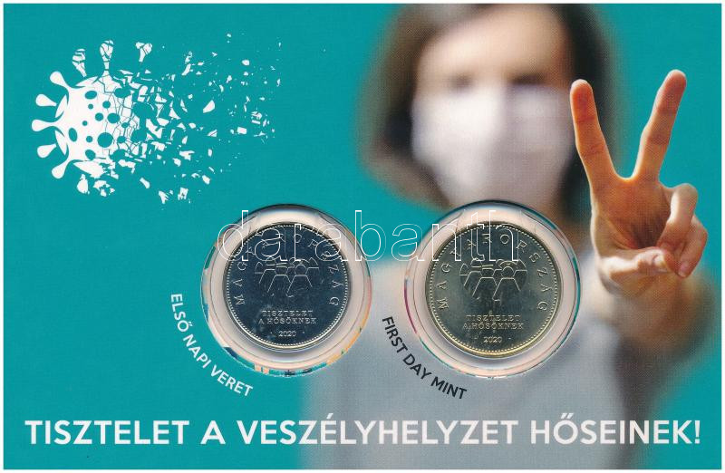 2020. 10Ft Cu-Ni + 20Ft Cu-Ni-Zn "Tisztelet a hősöknek" elsőnapi veret, sorszámozott emléklapon "01724" T:UNC