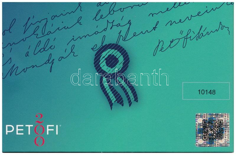 2023. 200Ft bimetál "Petőfi 200" első napi veret sorszámozott emléklapon "10148" T:UNC