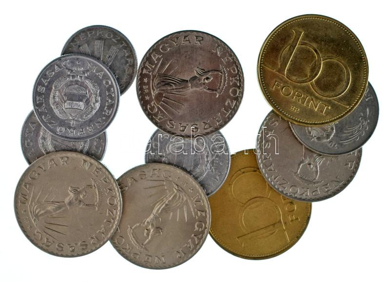 Vegyes magyar 11db-os érmetétel: 1971-1995. 20f Al + 1Ft Al (3x) + 5Ft Ni + 10Ft Ni (4x) + 100Ft Cu-Ni-Zn (2x) T:XF,VF