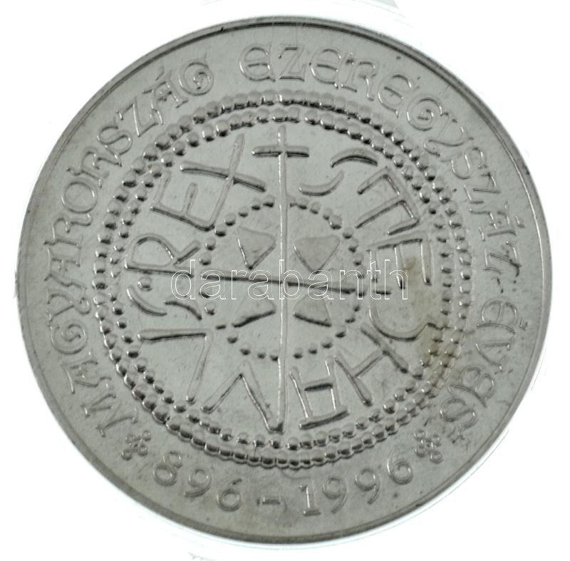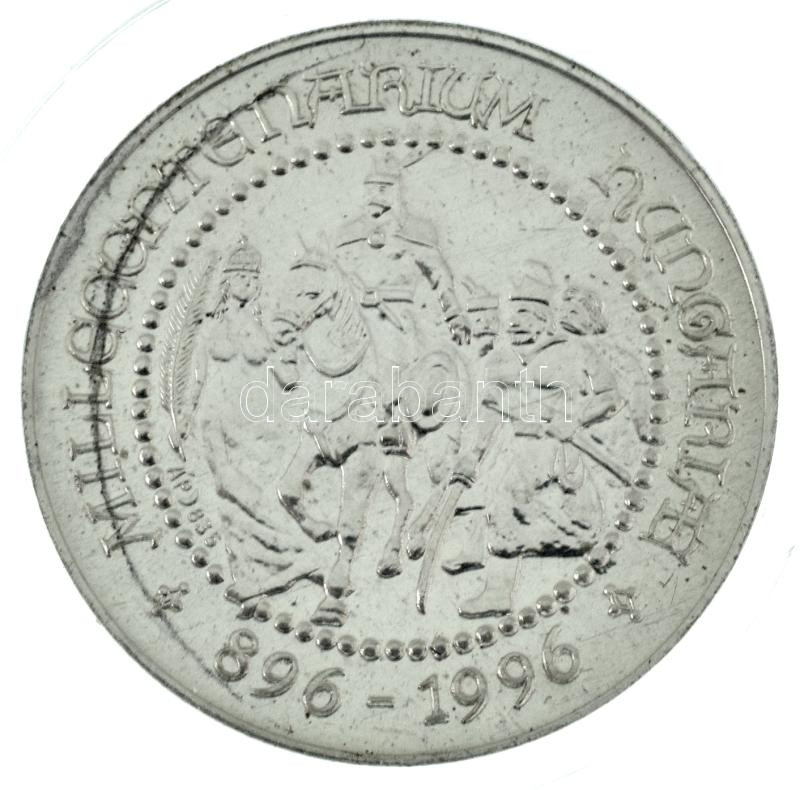 1996. "Millecentenarium Hungariae 896-1996 / Magyarország ezeregyszáz éves 896-1996" kétoldalas jelzett Ag emlékérem sérült kapszulában (~5,80g/0.835/27mm) T:UNC