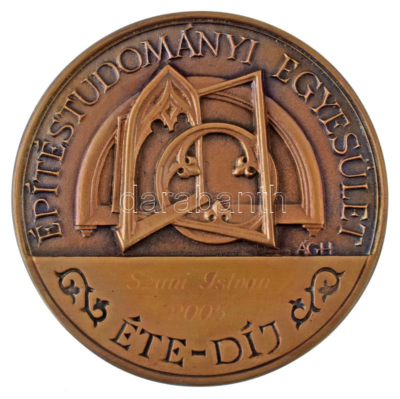Ágh Fábián Sándor (1954-) 2005. "Építéstudományi Egyesület - ÉTE-... https://www.darabanth.com/en/514-Auction-philately-postcards-numismatics-artwork-books-colletibles-jewelry/515.0/Numismatics/Hungarian-commemorative-medals-and-plaques~1312/Agh-Fabian-Sandor-1954-2005-3Cem3EEpitestudomanyi-Egyesulet-ETE-dij3Cem3E-egyoldalas~II3424588