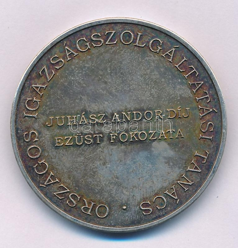 Bogár Lívia (1957-) DN "Országos Igazságszolgáltatási Tanács - Juhász Andor Díj Ezüst Fokozata" ezüstözött bronz díjérem tokban (42,5mm) T:AU patina