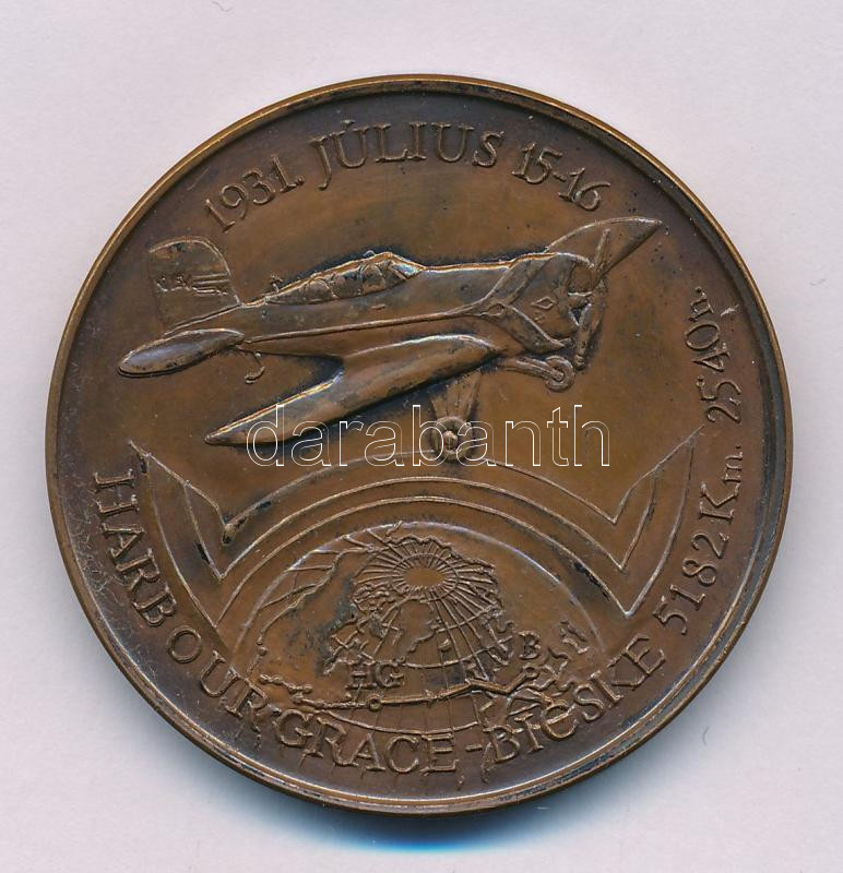 Bozó Gyula (1913-2004) 1991. "60 éves a magyar óceánrepülés Endresz György - Magyar Sándor / 1931 július 15-16. Harbour Grace - Bicske 5182Km 2540h" kétoldalas bronz emlékérem (42,5mm) T:AU patina