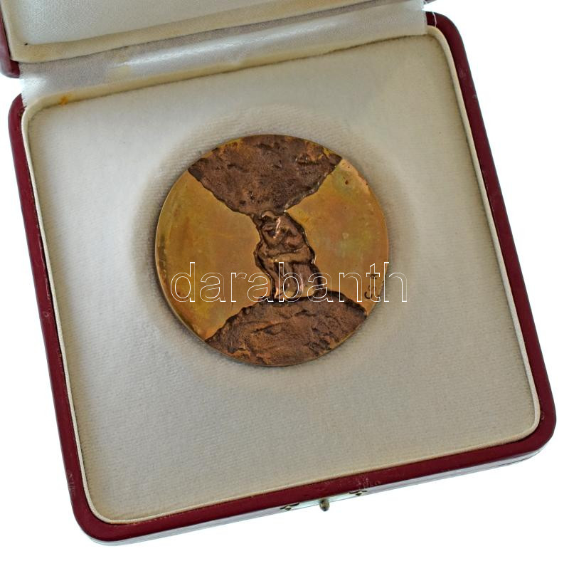 Hungary 1973. "Loránd Eötvös Award" bronze award medallion in original, damaged case. Szign.: Róbert Csíkszentmihályi (66-67mm) C:UNC,AU