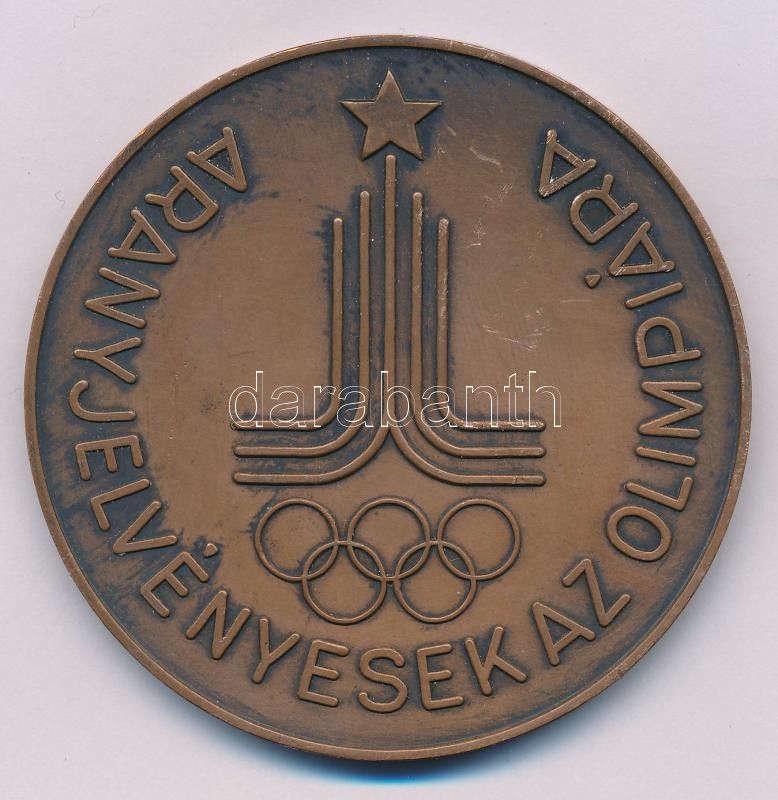 DN (1980 k.) "Aranyjelvényesek az Olimpiára / A KISZ Központi Bizottsága" kétoldalas bronz emlékérem, "0019" számozással (70mm) T:XF, patina, karc