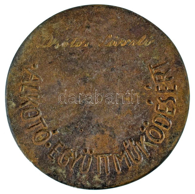 DN "20 éves a Miskolci Kertbarát Mozgalom / Alkotó együttműködésért" kétoldalas, öntött bronz emlékérem, névre szóló gravírozással a hátoldalán (88mm) T:AU,XF, patina