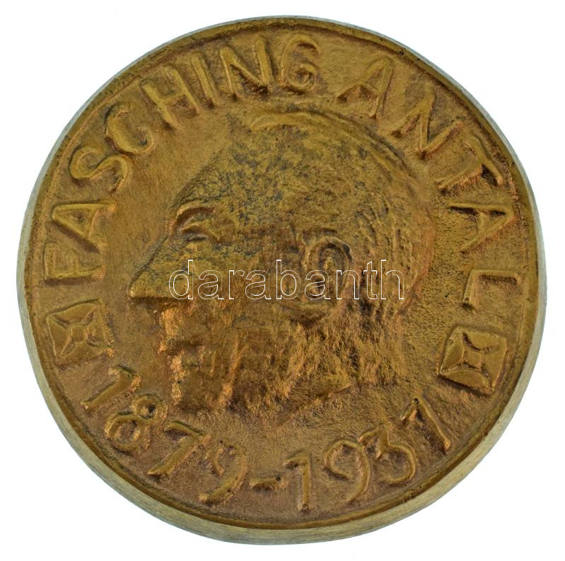 DN "Fasching Antal 1879-1931" egyoldalas, öntött bronz emlékérem szütyőben, magyar nyelvű ismertetővel, hátoldalán "ALTERNATIV 34" gravírozással (65mm) T:AU