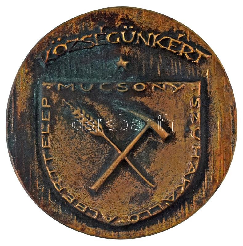 DN "Községünkért - Mucsony - Szuhakálló - Alberttelep" egyoldalas, öntött bronz emlékplakett (97mm) T:XF, patina